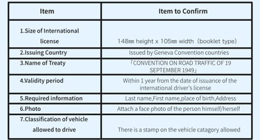 International Driver's License is valid for one year from the date of issue(please be sure to check the date of issue)and valid for driving in Japan for one year from the date of landing in Japan.(Please check the entry/exit stamp in your passport showing the date of landing in Japan).