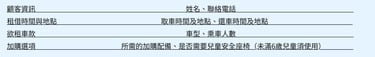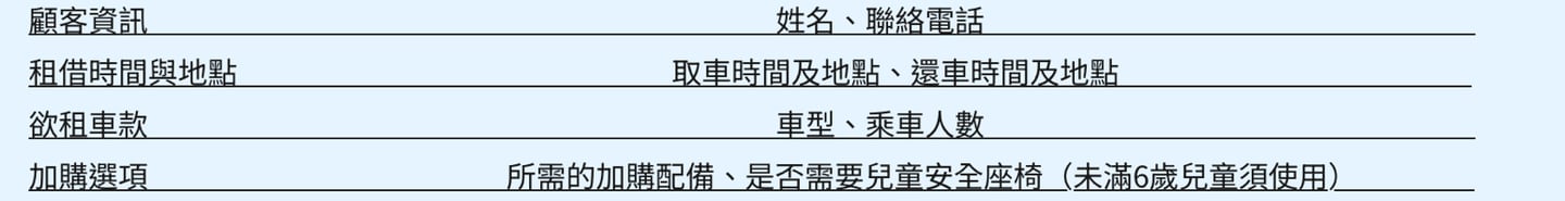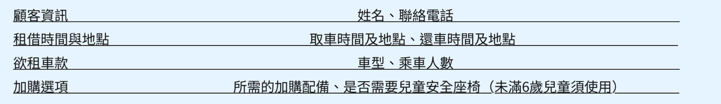 預約時需提供的資訊